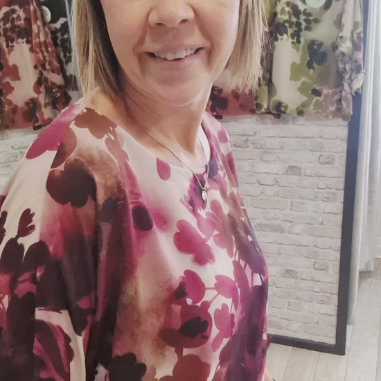The Abstract Leaf Print Top features a unique, nature-inspired design with artistic leaf patterns in vibrant tones. Made from soft, breathable fabric, it offers a relaxed fit that's perfect for all-day wear. This eye-catching top adds a stylish, contemporary flair to both casual and dressy outfits.