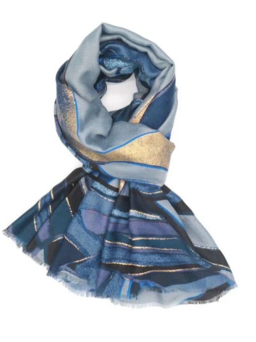 Elevate your look with our gold abstract scarf, crafted from soft polyester. ✨ Available in stunning gold, grey, and blue, this versatile accessory adds a touch of sophistication to any outfit. Perfect for layering and bringing a pop of style to your wardrobe!