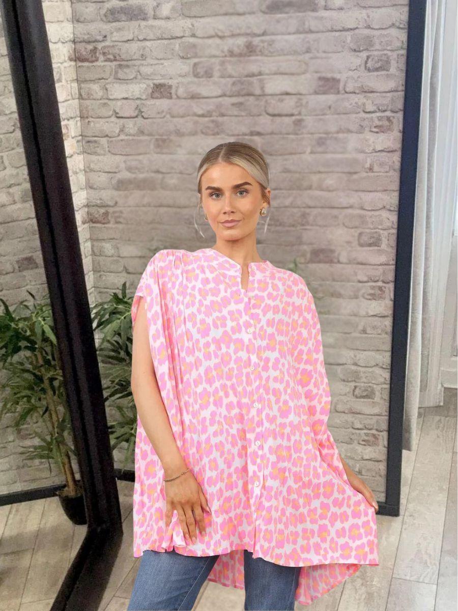 This leopard cap sleeve shirt with its bright colours and bold pattern will make you stand out from the crowd. Perfect for casual outings, nights out, or layered over basics for a trendy look.