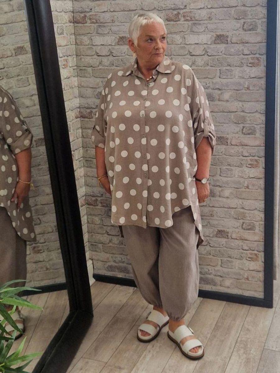 A polka dot high low shirt features a playful pattern of evenly spaced dots, adding a fun and timeless touch to any outfit. The high-low hemline—shorter in the front and longer in the back—creates a flattering, flowy silhouette. It's a versatile piece that pairs well with jeans for a casual look or with tailored pants for a more polished style.