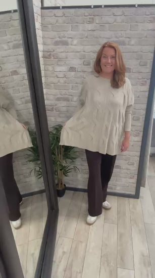 Round Neck Cable Knit Jumper with Modal