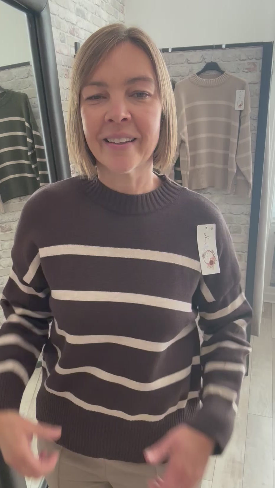 This Round Neck Stripe Jumper showcases a classic, crew-style neckline for a clean and timeless look. Its striped pattern adds a playful yet polished touch, making it easy to pair with jeans or tailored trousers. Crafted from soft, comfortable fabric, it’s perfect for layering or wearing on its own in any season.