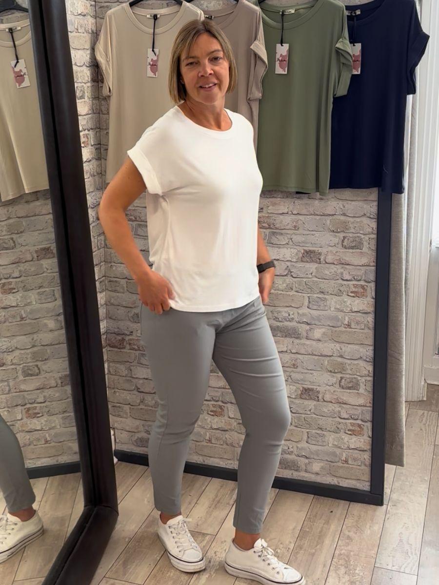 The Soft Round Neck Short Sleeve T-Shirt is a wardrobe essential, offering effortless style and comfort. Made in Italy from our premium Italian clothing collection, it features a breathable blend of 95% viscose and 5% elastane for a soft, stretchy fit. Designed as a one-size piece, it comfortably fits UK sizes 8–16.
